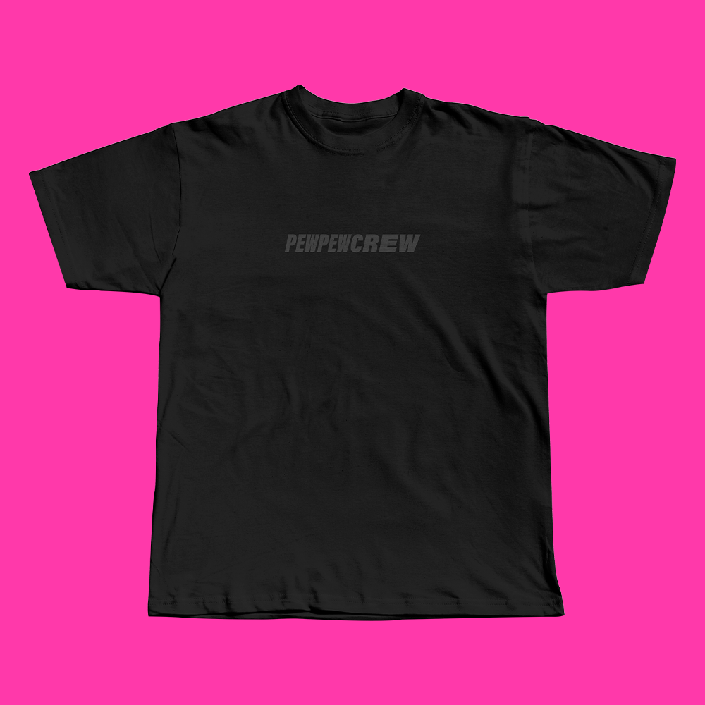 A t-shirt PEW PEW V6 traz o estilo black on black com impressão cinza sobre preto — minimalista, premium e com atitude.